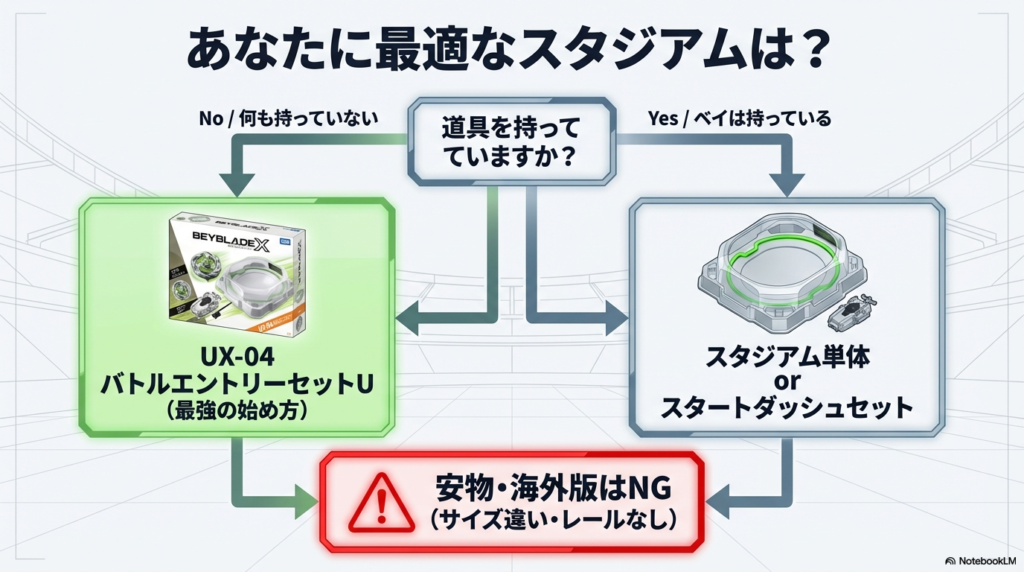 スタジアムの重要性がわかったところで、次は「じゃあ具体的にどれを買えばいいの?」という疑問にお答えします。実は、あなたの目的(ガチで勝ちたいのか、とりあえず体験したいのか)によって、選ぶべき正解は変わってくるんです。